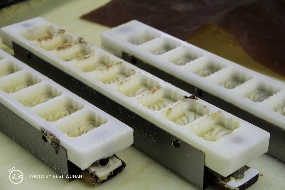 从最初使用木质模具,将麦芽糖压制成型后,用木棒捶打使其落下,到现在经过改良后使用的高级塑料模具,不易粘黏,更易成型。